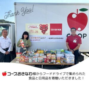 【コープおきなわ】寄贈ありがとうございます! 2024年2月16日 最終更新日時 : 2024年3月29日 八重瀬社協 2月15日(木)生活協同組合コープおきなわ様からフードドライブスマイルピックアップで集められた食品と日用品を寄贈いただきました!温かいご支援とご協力に心より御礼申し上げます。 共有:クリックして Twitter で共有 (新しいウィンドウで開きます)Facebook で共有するにはクリックしてください (新しいウィンドウで開きます) 関連